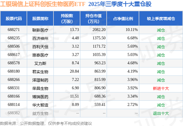 本站音书,日前工银瑞信上证科创板生物医药ETF基金公布三季报,2025年三季度最新边界2.06亿元,季度净值涨幅为18.43%。